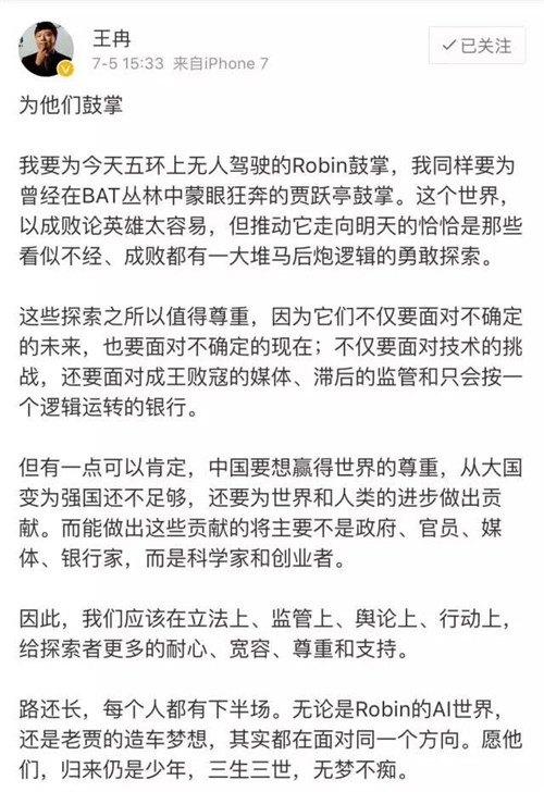 經緯創(chuàng)投創(chuàng)始合伙人張穎也在個人微博發(fā)表簡短的看法: