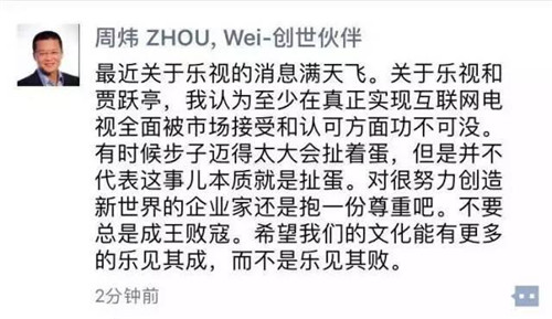樂視控股傳播副總裁程時盛又在微信朋友圈發(fā)文對此事做了進一步澄清。