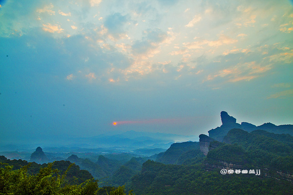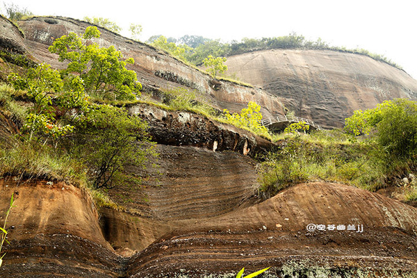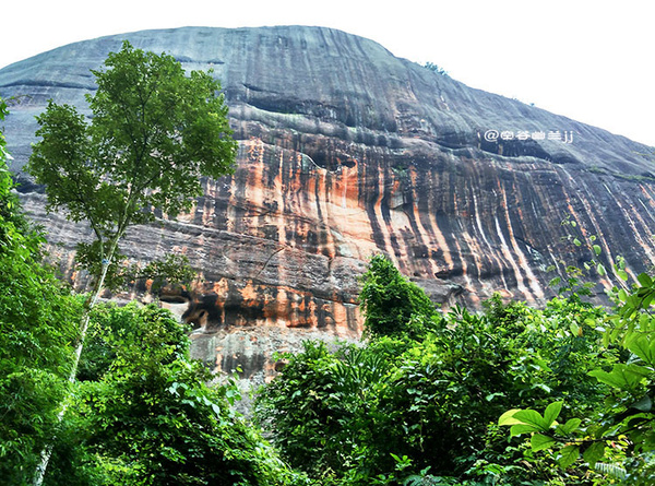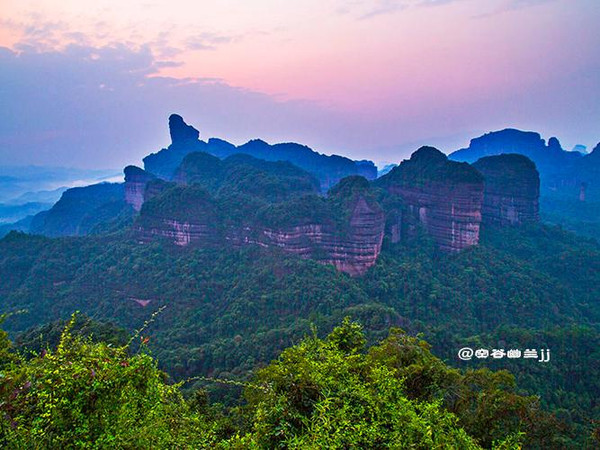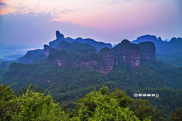 丹霞山之美,是那種把雄奇包裹在雋秀里的含蓄之美。它并不張揚,遠望像是一幅優(yōu)美寧靜的水彩畫,顯示出一種優(yōu)雅之美、從容之美和曠達之美。雖然它的山勢并不高,但它的許多懸崖峭壁,像刀削斧鑿,直指藍天,無數(shù)奇巖美洞,隱藏于山中,景色相當(dāng)奇麗。