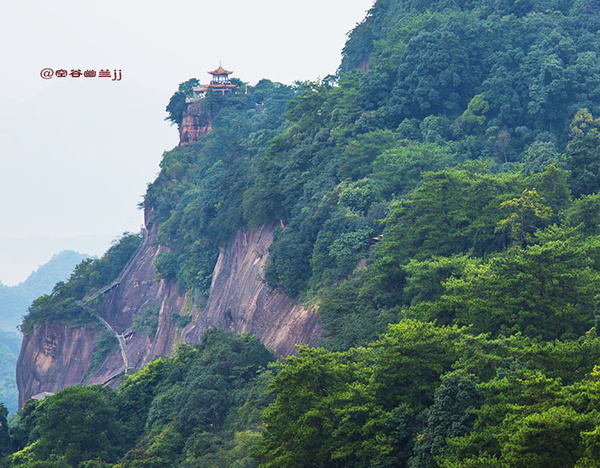 從山腳下乘索道上丹霞山主山之巔—寶珠峰,霧突突的天,在騰空而上的索道上縱目遙望置身于崇山峻嶺之中,不一會兒就到達寶珠峰頂,走到東部觀景臺(韶音亭)遠眺,群峰疊翠,連綿起伏,“無限風(fēng)光在險峰”的詩情畫意,得到淋漓盡致的體現(xiàn),讓人感受到世界名山的神奇魅力。