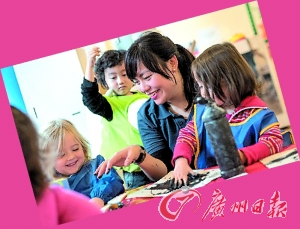 日托中心還為每位學(xué)生準(zhǔn)備了專屬于自己的英文老師與一名中文老師,基本的教學(xué)方式是“一位老師用英文和孩子玩游戲、唱歌、說話,另一位老師用中文重復(fù)”。這種二對(duì)一的教學(xué)方式獲得了不少英國(guó)父母的認(rèn)同。