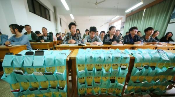 此前已經(jīng)有一些大學(xué)課堂施行“課前上交手機(jī)”,圖為洛陽理工學(xué)院的學(xué)生課前上交手機(jī),每個(gè)手機(jī)一個(gè)“機(jī)位”。