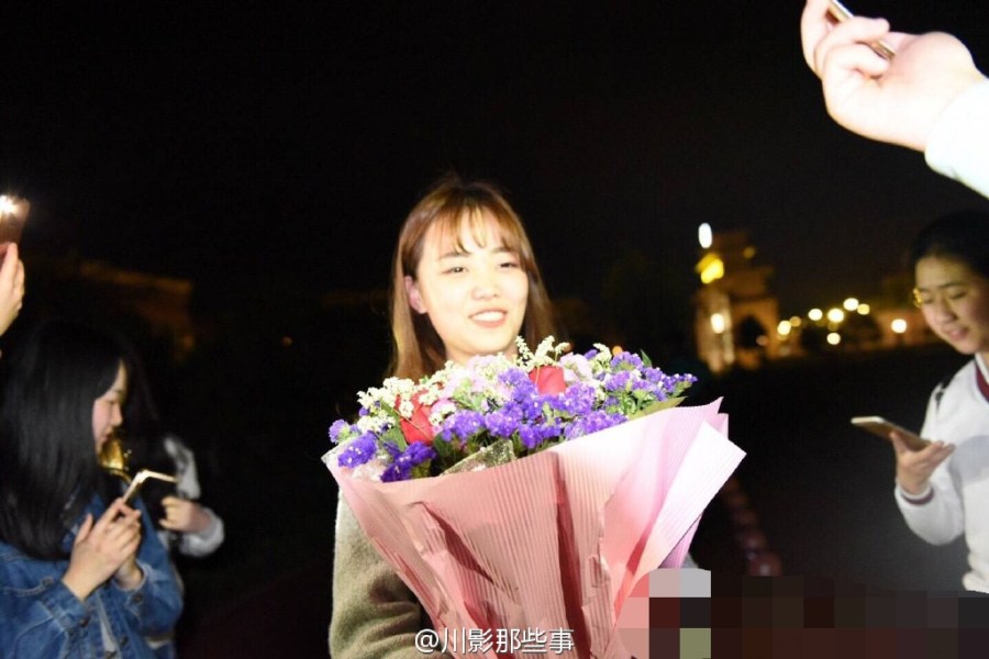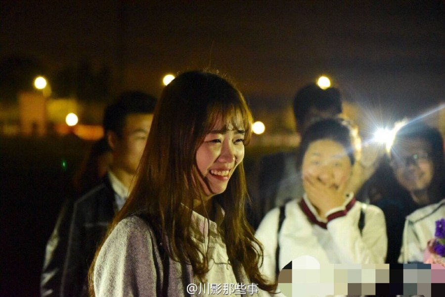 這不是求婚!4月6日晚,四川電影電視學(xué)院操場(chǎng)上川影2015級(jí)編導(dǎo)六班的同學(xué)們給美女輔導(dǎo)員過生日,全班男生單膝跪地唱《小幸運(yùn)》。