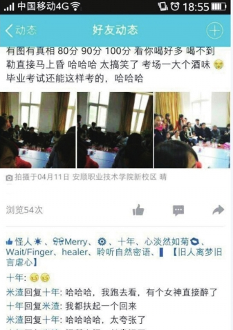 4月12日,報道了安順職業(yè)技術學院一名教師與學生在辦公室飲酒,并聲稱以喝酒多少來定考試成績之后,引起了該學院高度重視。據(jù)了解,目前,涉事教師已停職接受調(diào)查。