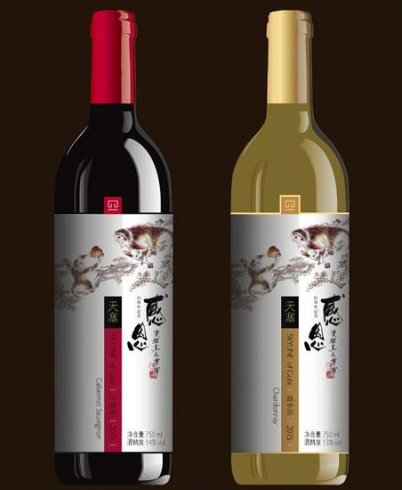 天塞酒莊邀請(qǐng)中國(guó)“三猴王”之一的瓷猴王:萬(wàn)志軍大師親情奉獻(xiàn)“靈猴獻(xiàn)瑞”圖,并手書(shū)“感恩”二字!在生肖酒標(biāo)上面,一只小猴子捧 著一顆仙桃獻(xiàn)給大猴子,猴子相互微笑,其樂(lè)融融,整體畫(huà)面溫馨而感人——“猴王”大師用精絕而細(xì)膩的筆觸,完美詮釋出“感 恩”二字的動(dòng)人之處。