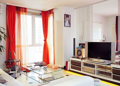 把客廳和臥室區(qū)分開的,是茜茜獨(dú)創(chuàng)的“一簾幽夢(mèng)”。