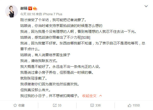 謝楠凌晨發(fā)文