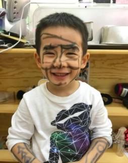據臺灣媒體報道,星二代Jasper(小小春)跟著爸爸陳小春上《爸爸去哪兒5》爆紅,軟萌善良的個性,瞬間擄獲不少粉絲的心,但其實他也有頑皮的一面,近日就有網友曝光兩張他搞怪的畫面,只見他拿著一支黑色的筆,將自己的全身都涂滿,還對著鏡頭笑得非常開心,逗趣模樣讓人笑翻。