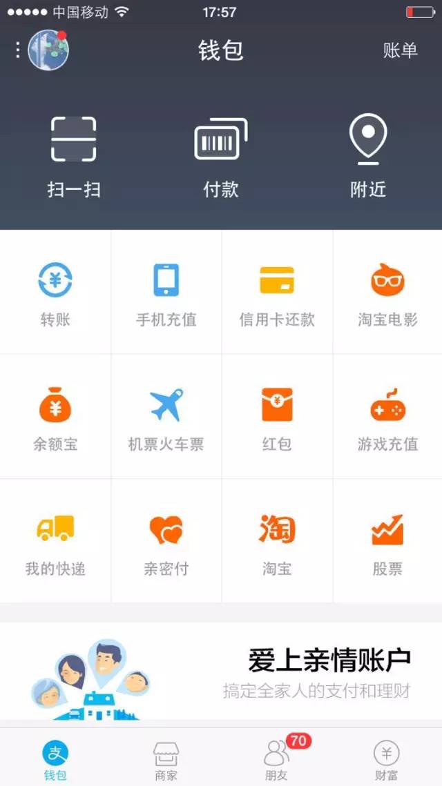 新版支付寶還內(nèi)嵌了淘點點,也就是說,上支付寶也能點外賣了。還有什么飛機票啦、火車票啦,統(tǒng)統(tǒng)可以在上面買。