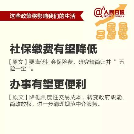 這次會議還用十個“更加注重”指明了新常態(tài)下應(yīng)該“怎么干”。更為關(guān)鍵的是,這個看似“高大上”的經(jīng)濟工作會議,其實離你我并不遙遠:社會保險費有望降低、非戶籍人口也能住公租房、鼓勵房企適當降房價……中央敲定下的這些事,新的一年毫無疑問將給你我生活帶來深刻影響。