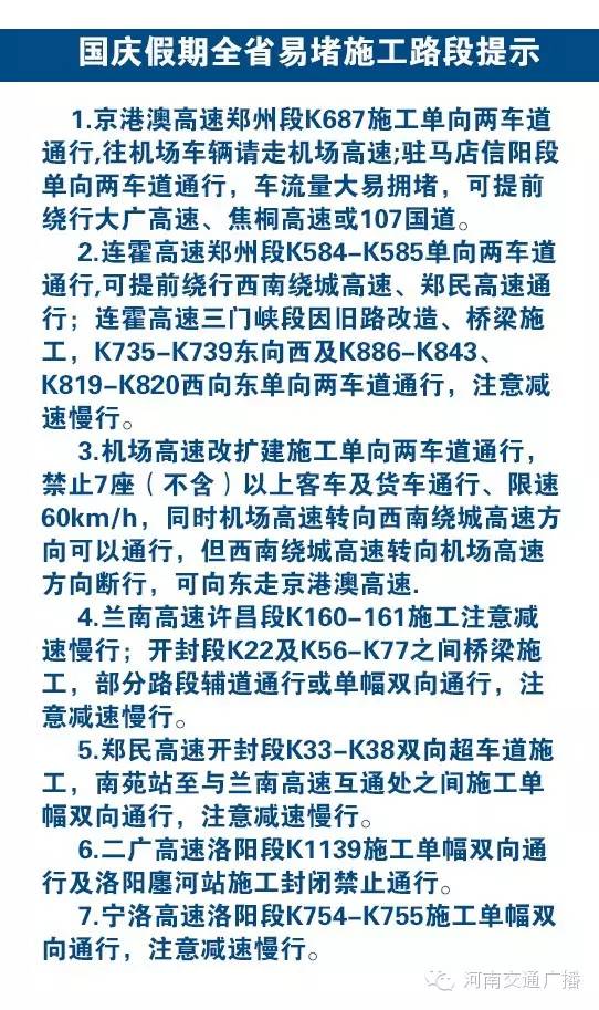 更多實時路況請關(guān)注“河南交通廣播”官方微博微信和“交廣領(lǐng)航”APP實時播報。