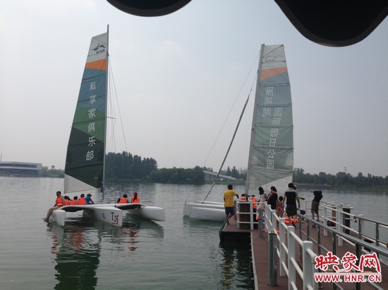 映象網(wǎng)訊 (記者 殷清卉)提起帆船,大家一般想起在大海里暢游的感覺,但是現(xiàn)在在我們鄭州也可以玩帆船了,7月27日,來自全省各地的300多名幸運聽眾,便在河南電臺信息廣播《房產(chǎn)江湖》節(jié)目組的帶領下,在雁鳴湖國際假日公園過了一把帆船癮。