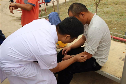 當天前來求診的工友絡(luò)繹不絕,專家們耐心解答工友疑問,傳授醫(yī)療保健知識,指導(dǎo)群眾平常要注意身體保健,養(yǎng)成良好的飲食習(xí)慣和生活習(xí)慣,甚至還為頸椎病患者、腰椎病患者進行即時針灸。義診從上午10點開始,一直開展到中午12點多,就診人群才慢慢散去,專家們早已餓得饑腸轆轆。專家們精湛的醫(yī)療技術(shù),耐心細致的服務(wù),受到建筑工人們的一致好評。