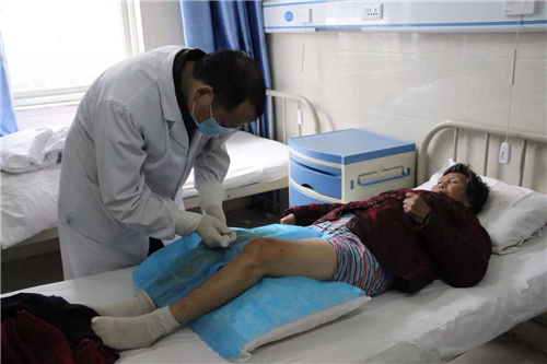 這位大姐有骨性關(guān)節(jié)炎,腿部多處常年疼痛。這位醫(yī)生很認(rèn)真的幫助大姐確認(rèn)疼痛位置,并且用醫(yī)院專門帶來的治療儀為大姐治療。醫(yī)生說先治療一次,如果疼痛緩解大概進(jìn)行3-9次的治療就可以痊愈了。