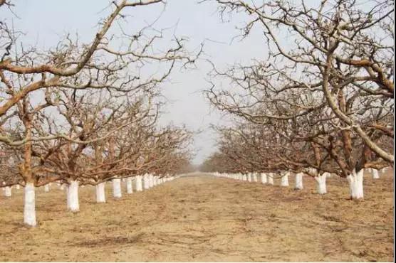 冬季對樹干要進行涂白??蓪?2%的水、22%生石灰、3%石硫合劑和3%食鹽混合均勻涂用。涂白劑的濃度要合適,以涂上樹干后不往下流又不粘團為宜,生石灰一定要溶化,否則它吸水放熱會燒傷樹干。果樹涂白后,不僅能有效地防止果樹冬季凍害、日灼和畜禽嚙啃,而且能對殘留在枝干上的病蟲起到良好的防治作用。如果在刮皮之后再進行涂白,可對藏匿在枝干粗皮、翹皮或裂縫中的越冬蘋果小食心蟲、梨小食心蟲、梨星毛蟲、紅蜘蛛等進行有效的防治。