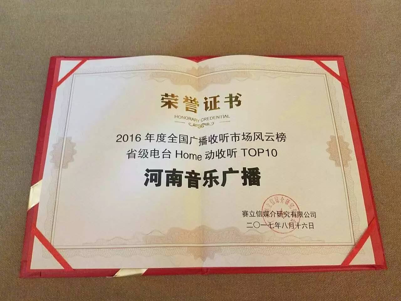 2017年8月16日,賽立信2017年客戶年會在寧夏回族自治區(qū)銀川市隆重開幕。來自全國各地的近百家電臺的200位廣播人參加融媒高峰論壇,聆聽了廣東廣播電視臺副臺長趙隨意先生,蜻蜓FM副總裁郭嘉先生,荔枝FM總裁何欽龍先生,遠譽中國陳志堅先生,華中師大教授、碩士生導師王麗女士的精彩演講。在晚上舉行的2016收聽風云榜頒獎典禮上,魅力881河南廣播電視臺音樂廣播榮獲home動收聽榜top10。