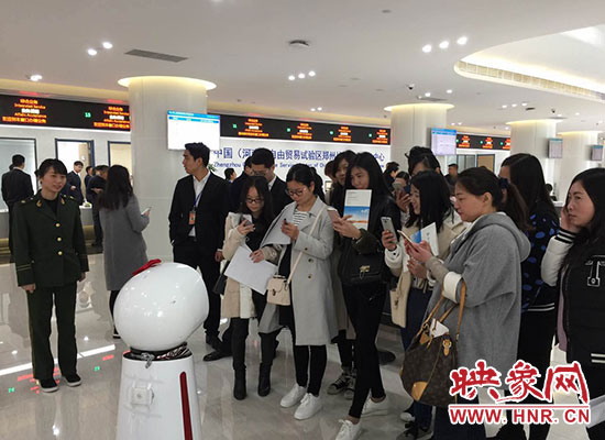 映象網(wǎng)快訊(記者 駱瓊 阮海峰 王邵怡 文/圖)4月1日上午,中國(guó)(河南)自由貿(mào)易試驗(yàn)區(qū)掛牌儀式在鄭州片區(qū)綜合服務(wù)中心舉行。這里入駐了17個(gè)政府部門,可辦理211項(xiàng)業(yè)務(wù),為區(qū)域內(nèi)的企業(yè)和居民辦事提供了極大的便利。