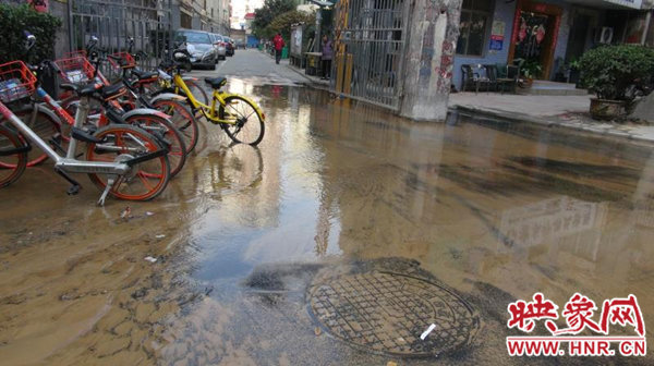 11月14日凌晨4時(shí)許,鄭州市燕壽路與黑莊路交叉口的金燕住宅小區(qū)樓下,一地下管道突然發(fā)生爆裂。大量的水夾著泥沙向四周流淌,小區(qū)成了一片汪洋。積水還堵了小區(qū)大門,居民通行困難。