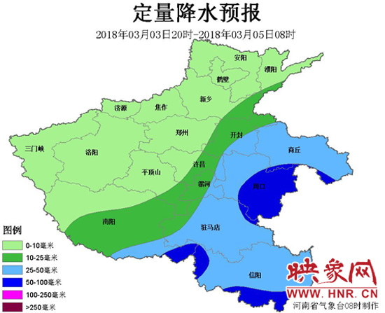 此次過程全省大部分地區(qū)有小到中雨,主要降水時(shí)段出現(xiàn)在3日夜里-4日白天,其中東部、南部有大雨,局部暴雨,并伴有雷電。過程雨量豫東、豫南達(dá)20-50毫米,其它地區(qū)5~20毫米,最大雨量可達(dá)10-20毫米/小時(shí)。另外,4日全省還會(huì)有4-5級偏北風(fēng),最高氣溫較前期下降7-9℃。