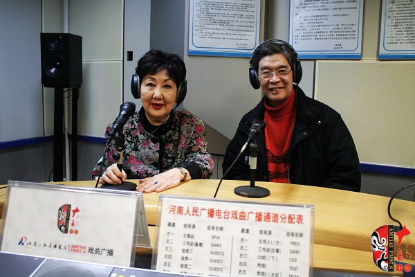 河南電臺戲曲廣播總監(jiān)木子(左)為京劇荀派傳人孫毓敏(右)介紹河南電臺戲曲廣播曾經(jīng)舉辦的中秋戲曲晚會