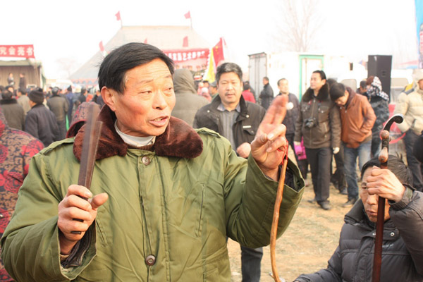 85歲的齊進(jìn)老人是附近水牛莊人,他說:“這個會很熱鬧啊,也趕幾十年了,這兩年扶持的都不賴,人比往年多,說書的來了之后,去年國家還給的有路費。這首先對藝人來說,支持很大,比往年可好,要是能發(fā)展下去,這會會越演越大?!?/p>