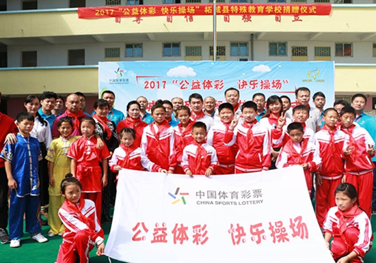2012年,國(guó)家體彩中心在全國(guó)推行“公益體彩 快樂操場(chǎng)”活動(dòng),為偏遠(yuǎn)貧困、條件艱苦的學(xué)校送去極度匱乏的體育器材及公益體育課,讓更多孩子享受到體育的啟蒙,讓鄉(xiāng)村校園的體育課堂豐富多彩。過去5年,“公益體彩 快樂操場(chǎng)”已在全國(guó)近2000所中小學(xué)安家落戶,惠及學(xué)生人數(shù)超過百萬。