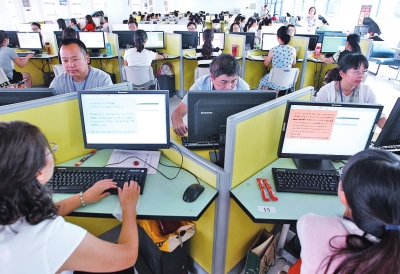 昨天上午9點(diǎn)半,鄭州47中的評(píng)卷現(xiàn)場(chǎng)內(nèi),各科評(píng)卷教師被分別集中在相應(yīng)的機(jī)房里閱卷評(píng)卷,十分安靜。