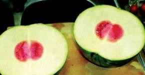 昨晚,王先生的朋友來家里做客,捎了一個(gè)西瓜。切開后,大家都傻眼了,除了中間蘋果大小的一圈瓜瓤是紅色的外,其他瓜瓤都是白色的,連一絲紅色都沒有,也沒有瓜籽。