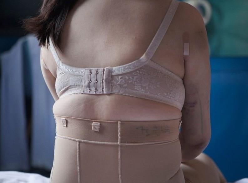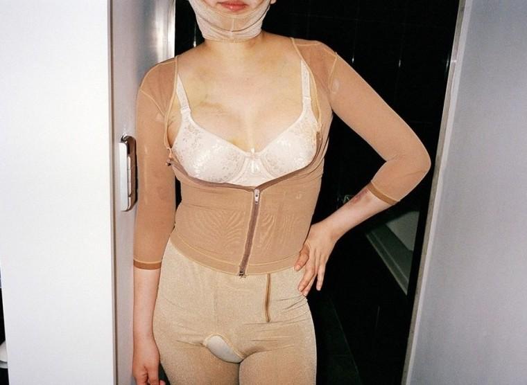 束身衣上下的身型是她的過去和未來,滿是術后的淤青,疼痛成為美麗代價的一部分。