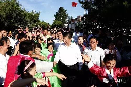 2015年7月16日,習近平在延邊州和龍市東城鎮(zhèn)光東村同當?shù)厝罕娫谝黄?。記?鞠鵬 攝