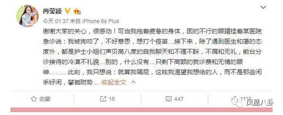 以往也有明星發(fā)微博正面懟醫(yī)院,前段時間鄒市明的妻子冉瑩穎發(fā)微博控訴醫(yī)院高價收費。