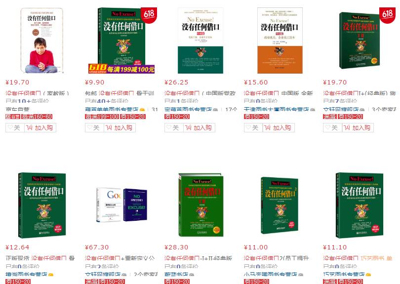目前,以“沒有任何借口”為名的其他跟風書仍在各大網站銷售。