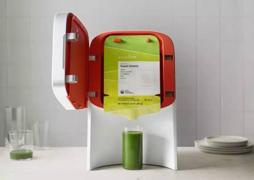 與傳統(tǒng)榨汁機(jī)不同的是,這款與互聯(lián)網(wǎng)連接的智能榨汁機(jī)“太過(guò)金貴”,不能把新鮮蔬果直接放進(jìn)去榨汁。購(gòu)買(mǎi)這款榨汁機(jī)的用戶必須配套購(gòu)買(mǎi)朱塞羅“果汁材料包”。