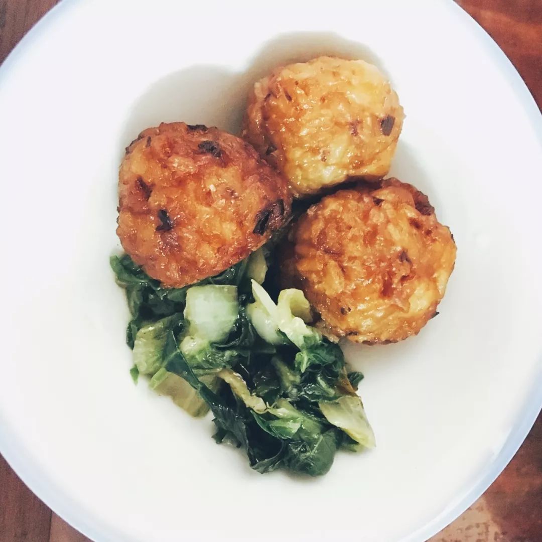 家里的習俗,小孩子年夜飯一定要先吃一口青菜,“清清濟濟”(家鄉(xiāng)方言),吃一口圓子,“團團圓圓”。小時候,外婆每年都會給我們先夾這兩樣到碗里,笑呵呵地讓我們吃。她走后,我們?nèi)匀槐3至诉@個習慣。