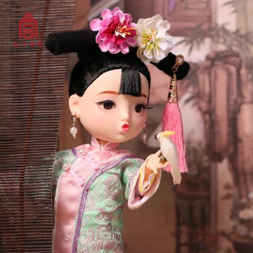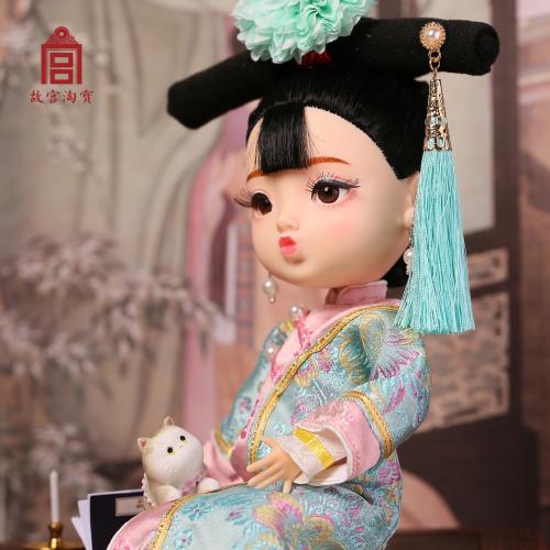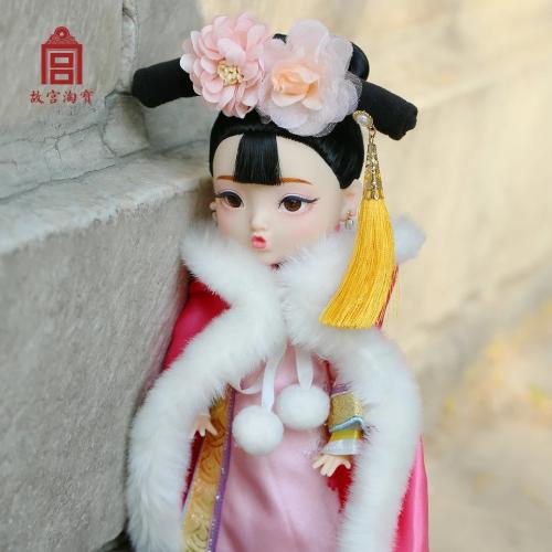 因此,故宮文創(chuàng)根據(jù)中國人的傳統(tǒng)五官印象,設計成此款烏發(fā)杏眼,寬額小嘴的中國娃娃。故宮文創(chuàng)方面表示,首次娃娃選擇了清代服飾,并在工藝允許的基礎上努力還原真實的清朝格格形象,之后還會陸續(xù)推出不同朝代的格格或公主服飾單品。