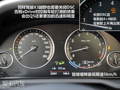在起初的前半部分,X3也一度帶給我們更為輕快的駕馭感,然而到了更加陡峭的后半部分,車速的減慢和質(zhì)心的后移,輪胎開始出現(xiàn)打滑的情形,xDrive偏重后驅(qū)的特性讓后輪陷入了危機。