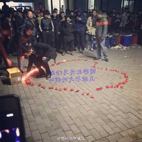 有時(shí)候表白失敗的因素不一定是被拒絕了,還有可能是學(xué)校領(lǐng)導(dǎo)的滅火器!在鄭州財(cái)經(jīng)學(xué)院,女主還沒(méi)來(lái),一場(chǎng)還未開(kāi)始的表白就已經(jīng)結(jié)束了,心疼那個(gè)男同學(xué),估計(jì)現(xiàn)在那帥男已經(jīng)哭暈在廁所,嗚,領(lǐng)導(dǎo)“法?!蹦氵€我愛(ài)情。