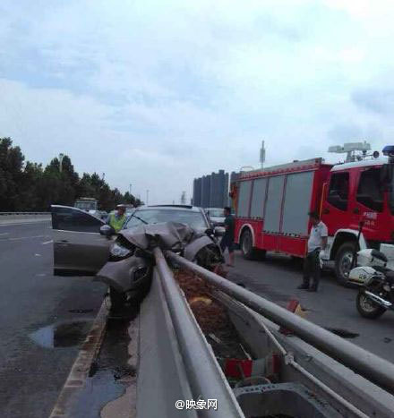 2、鄭州轎車撞上隔離帶 一女倆嬰兒當場死亡