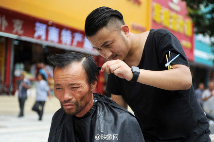 從7月21日開始,一位名叫紅濤的理發(fā)師,每逢周二在鄭州街頭免費為流浪人員理發(fā),他希望用此項行動呼吁大家關(guān)注街頭流浪人員群體。紅濤說,他還打算免費為農(nóng)民工等群體理發(fā),讓他們感受到社會的溫暖。