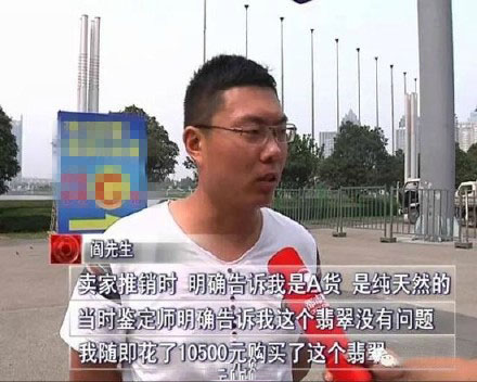 鄭州市民閻先生花了10500元在珠寶展銷會上買了一塊號稱A貨的翡翠,然而,鑒定結(jié)果卻顯示他買的其實是劣質(zhì)的B貨,也就是強酸腐蝕后人工加工的翡翠。目前,該展位賣家不見蹤影,主辦方也稱自己無責(zé)任。