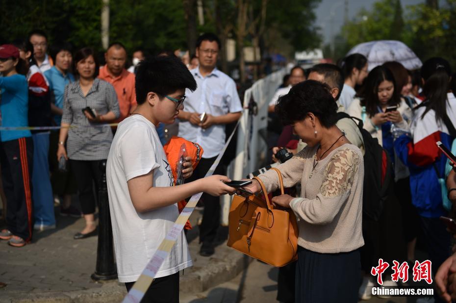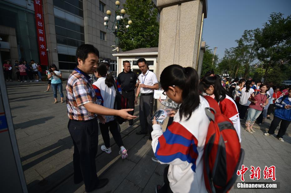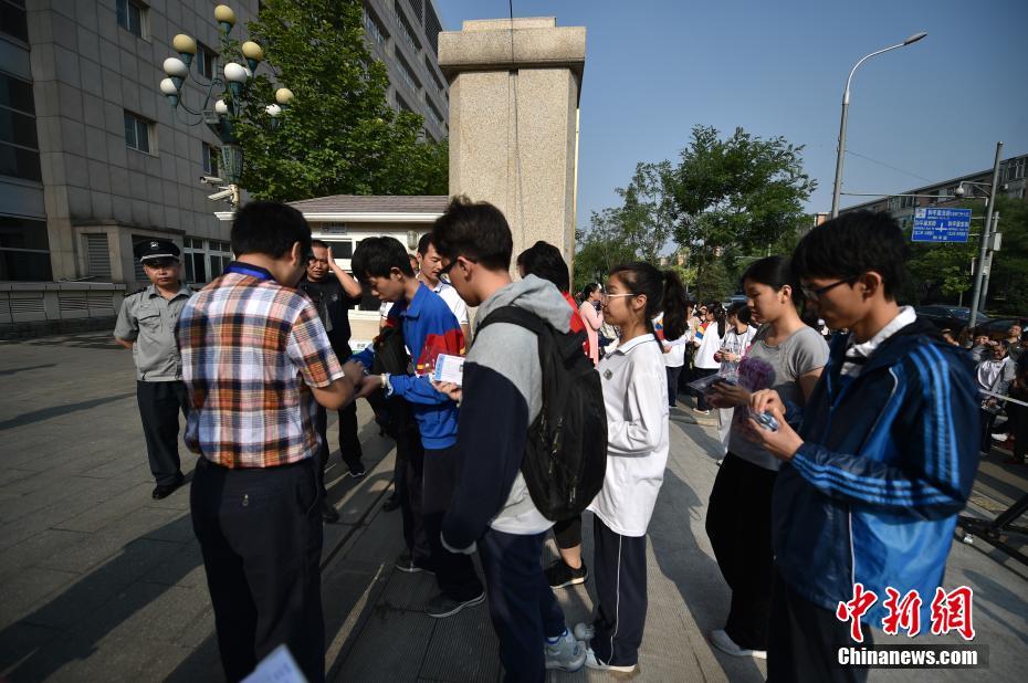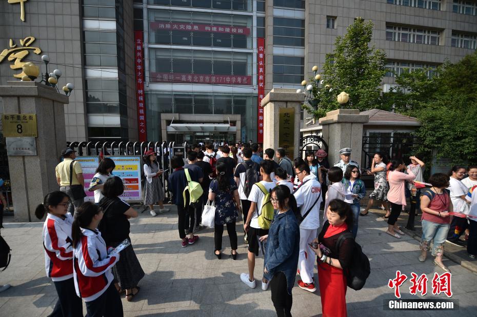 6月7日,2017年高考大幕正式拉開,全國(guó)將有940萬(wàn)考生參加考試。今年可謂是高考?xì)v史上的特殊年份,一方面,今年是高考恢復(fù)40周年,另一方面,今年也被稱為“新高考元年”,高考綜合改革試點(diǎn)地區(qū)的考生將迎來(lái)首次“新高考”。圖為北京市171中學(xué)考點(diǎn)的考生陸續(xù)進(jìn)入考場(chǎng)。中新網(wǎng)記者 金碩 攝