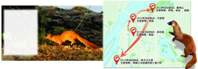 居住在鼓樓區(qū)煤炭港附近的知情居民武先生也是一名動(dòng)物攝影愛(ài)好者,據(jù)他多年的攝影經(jīng)驗(yàn)和追蹤觀察,總結(jié)勾畫出黃鼠狼在南京城北的一張“覓食行蹤圖”,2011年黃鼠狼出沒(méi)在下關(guān)多倫路一帶的居民區(qū),那里居住密集,也“養(yǎng)肥”了不少老鼠,它們成了黃鼠狼的美餐,據(jù)他觀察,每只黃鼠狼一夜間可捕食6只老鼠。2012年,多倫路一帶開(kāi)始動(dòng)遷,黃鼠狼們轉(zhuǎn)戰(zhàn)方家營(yíng),仍以老鼠為主食。之后黃鼠狼又來(lái)到幕府山一帶,主要以野兔、昆蟲(chóng)和蚯蚓為食。今年黃鼠狼把目光瞄準(zhǔn)到揚(yáng)子江大道濱江外灘,那里臨江多水,在傍晚退潮時(shí),小魚小蝦都“跳到了黃鼠狼的口里來(lái)”。多年的黃鼠狼拍攝追蹤經(jīng)歷也使得武先生因此混出個(gè)“武大狼”的綽號(hào)。