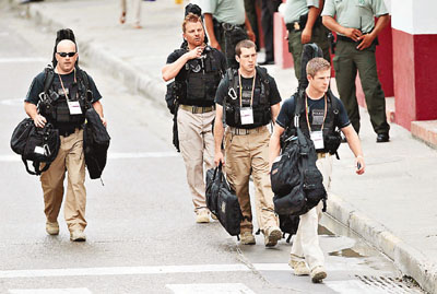 美國特工在美洲峰會會場外巡視。