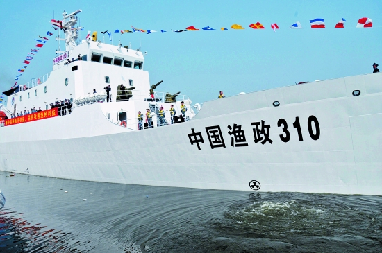 中國(guó)漁政310船總噸位2580噸,續(xù)航力6000海里,持航60個(gè)晝夜,可駛往國(guó)際無(wú)限航區(qū),最大航速可達(dá)每小時(shí)22海里。該船配備有現(xiàn)代化的設(shè)備,可搭載直升機(jī)。該漁政船首航隨即奔赴我國(guó)釣魚島海域開展?jié)O政巡航執(zhí)法管理工作;2012年2月至3月期間,該漁政船完成今年度首次南海巡航執(zhí)法任務(wù)。