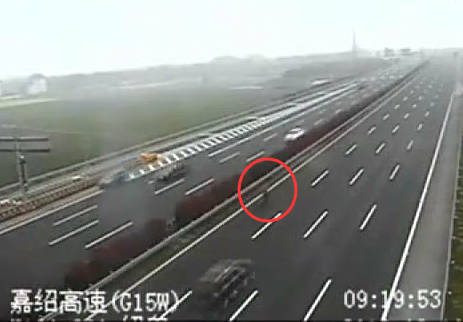 驚:大媽騎自行車(chē)車(chē)逆行上高速
