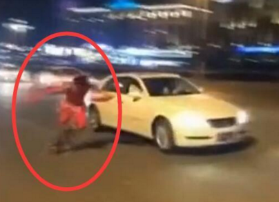 • 奇葩男穿輪滑扮哪吒馬路飛馳