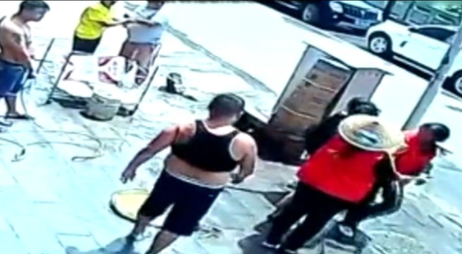全家出動 環(huán)衛(wèi)工被高跟鞋敲頭