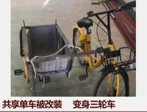 共享單車被改裝 變身三輪車
