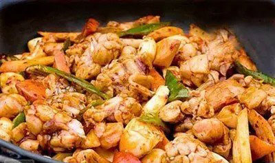 老百姓做菜講究的就是原汁原味,您柴雞買回來洗凈直接剁成小塊,不焯水就能直接煸炒。不過為了色香味俱全,今兒個(gè)還得教給您一個(gè)油炒糖色的方法。