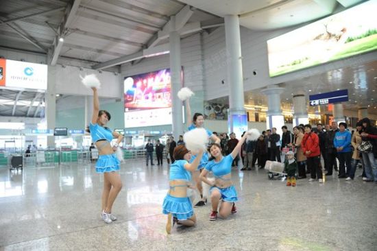 為穩(wěn)定旅客情緒,大連機場請來美女拉拉隊員跳操,引來眾多旅客圍觀。新青年網